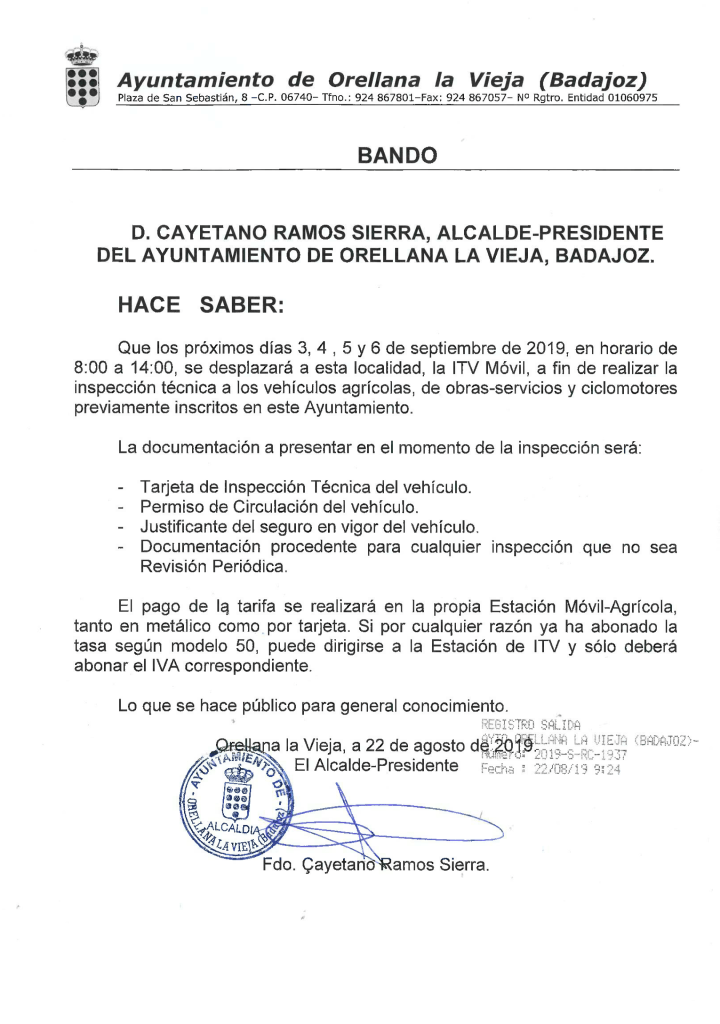 Bando: ITV Móvil en Orellana la Vieja