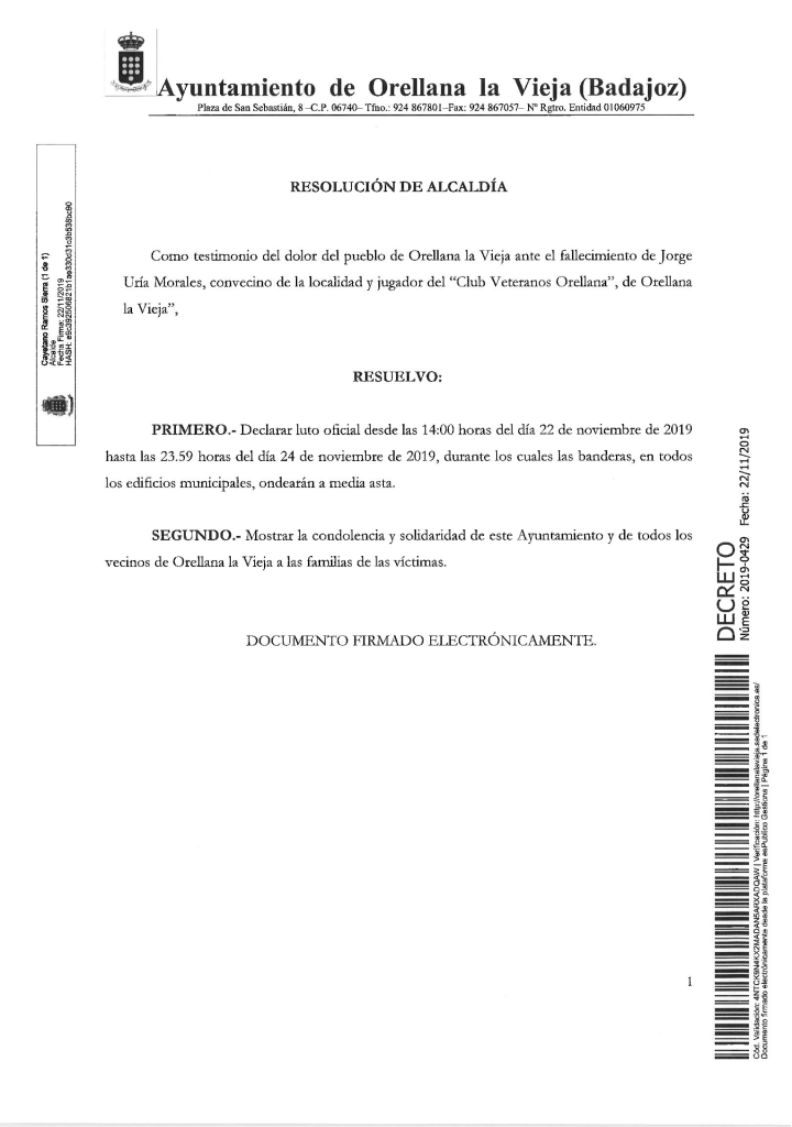 Orellana la Vieja decreta dos días de luto oficial por la muerte del joven en la presa del Cíjara