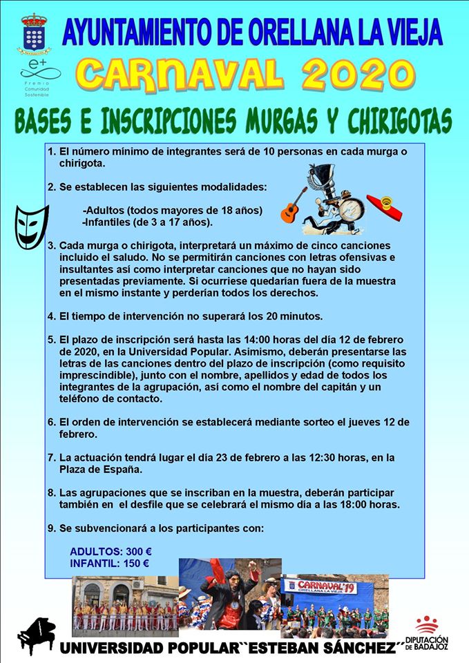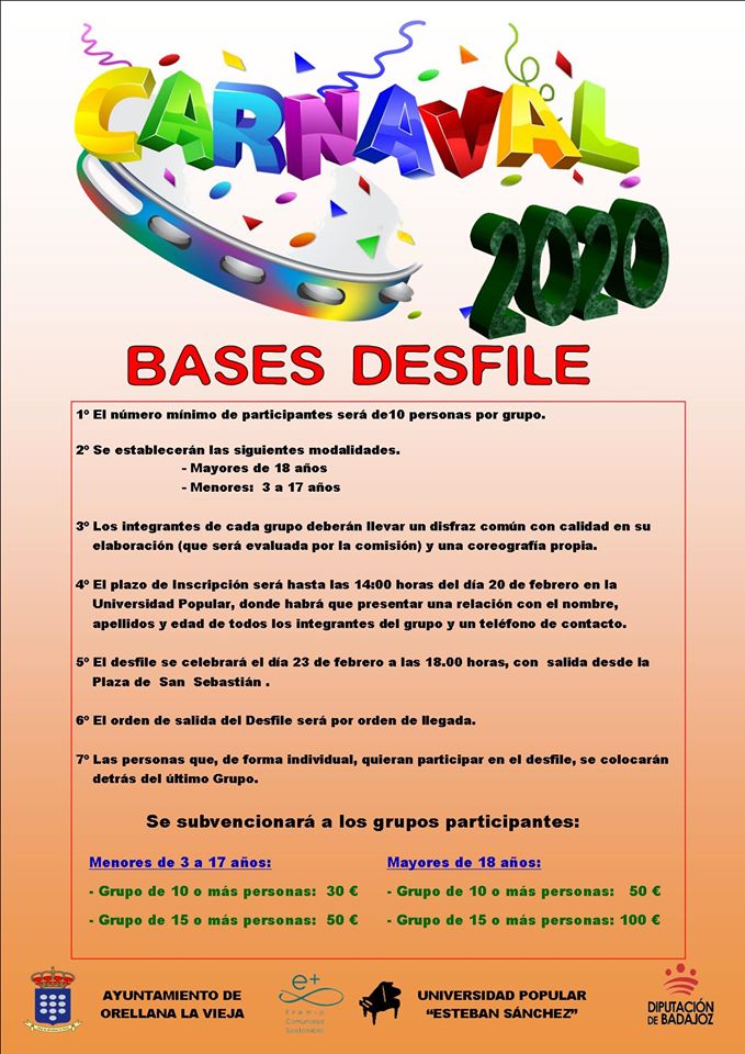 Bases concurso disfraces, desfile, murgas y chirigotas Carnaval 2020