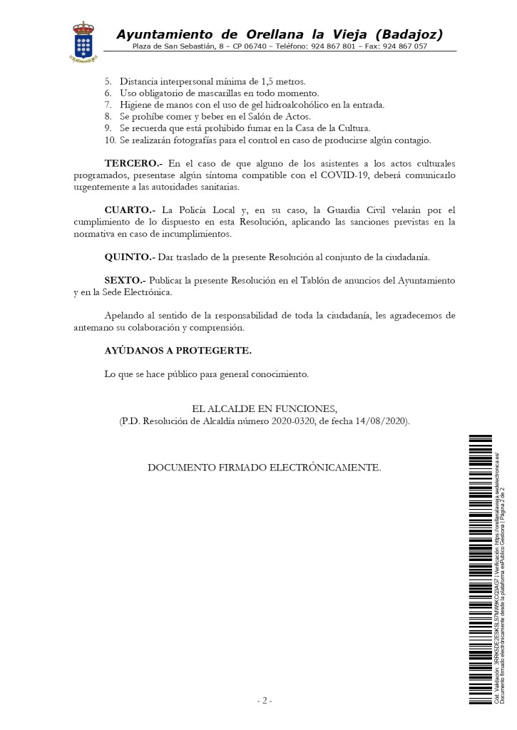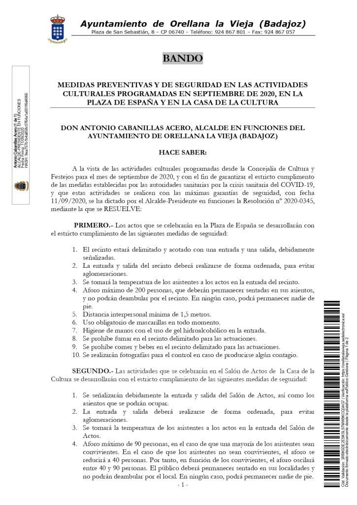 BANDO-Medidas preventivas actos culturales septiembre 2020