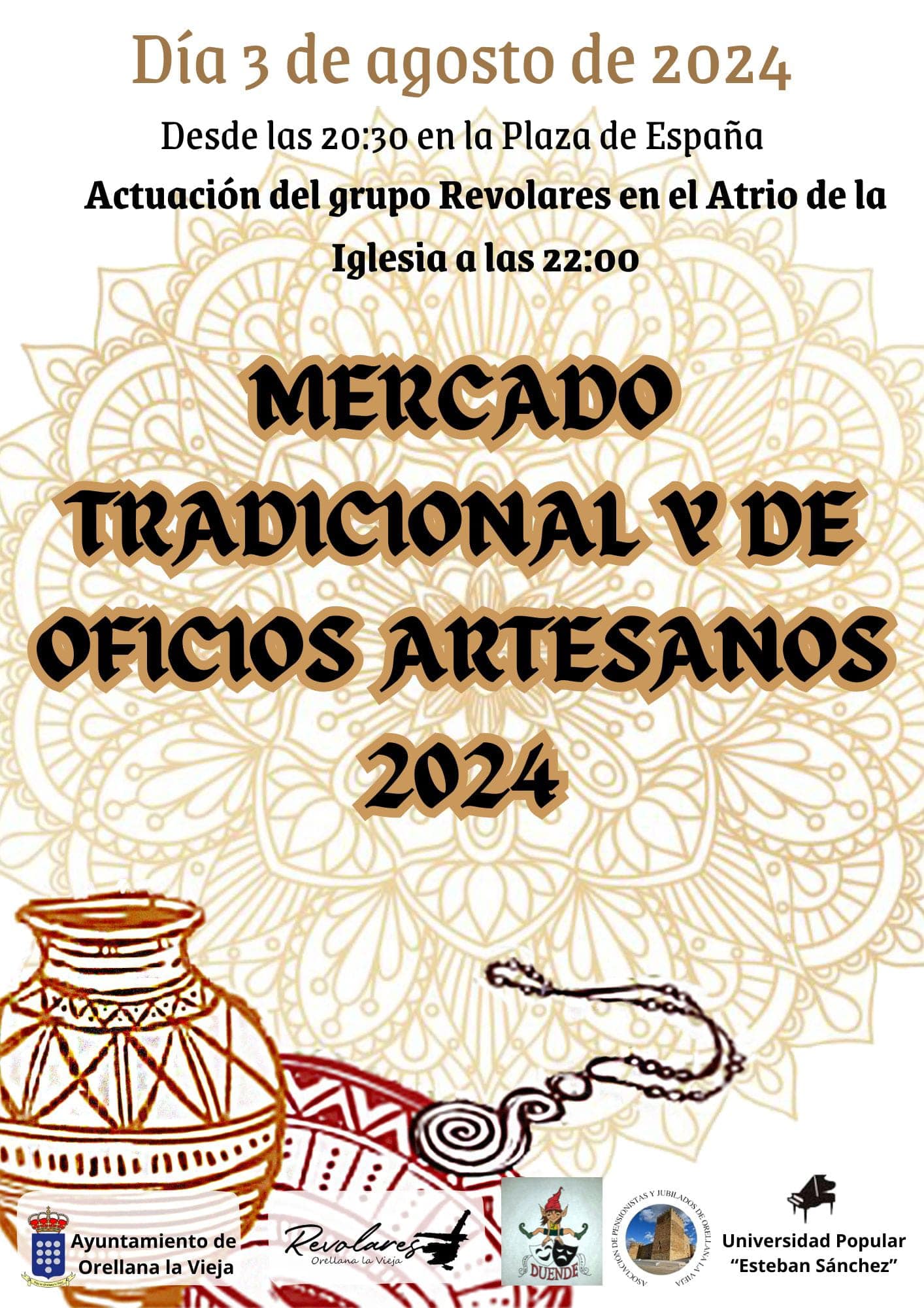 A las 22:00 horas actuación del grupo local REVOLARES en el atrio de la Iglesia.