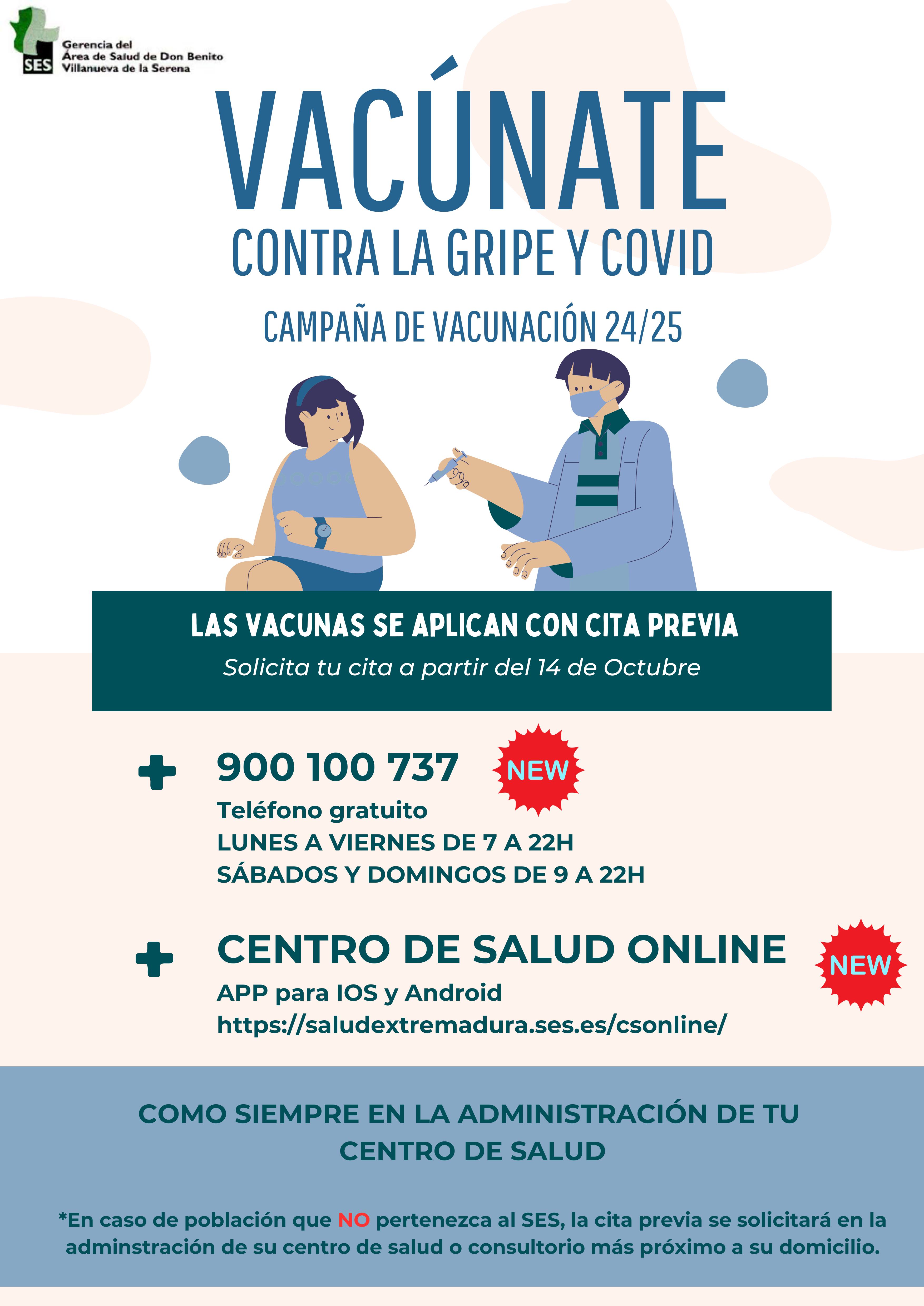 En el caso del Centro de Salud de Orellana la Vieja se puede pedir cita para la vacunación en horario de 9:00 a 14:00 horas, a través del teléfono 924 866 770.
