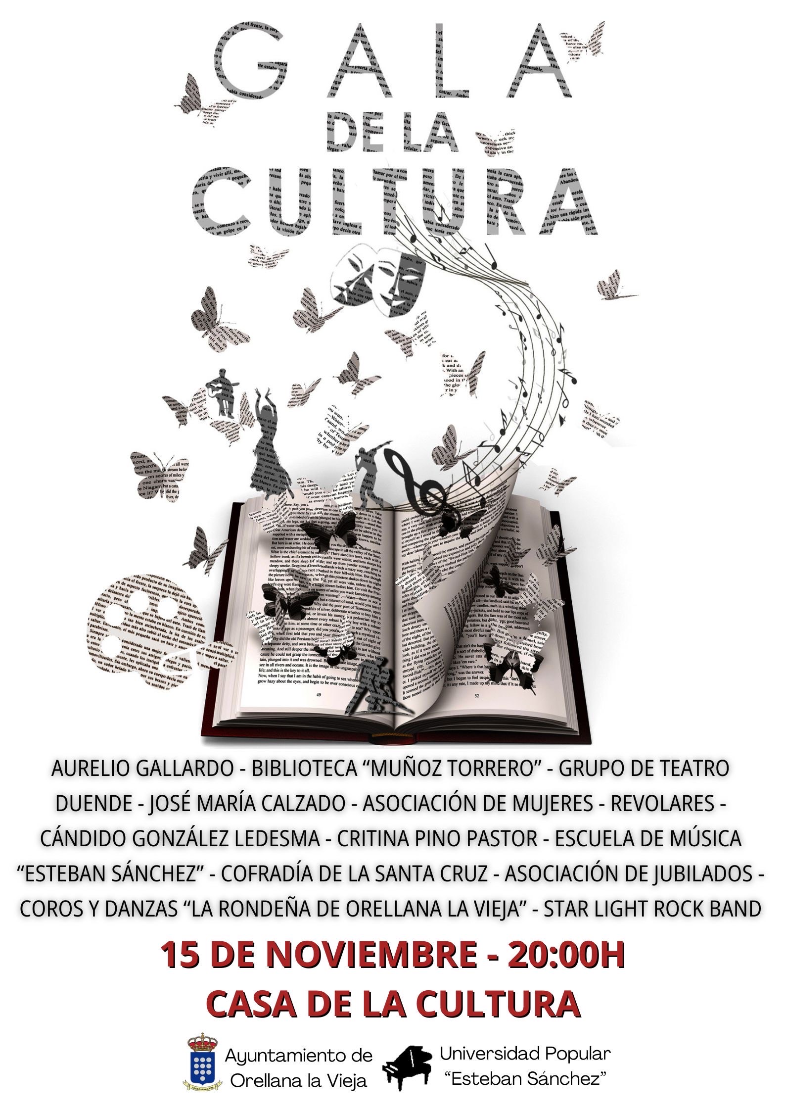 Este viernes, 15 de noviembre, se llevará a cabo en el salón de actos de la Casa de la Cultura la Gala de la Cultura 2024, en la cual participarán diferentes asociaciones y artistas de Orellana la Vieja.