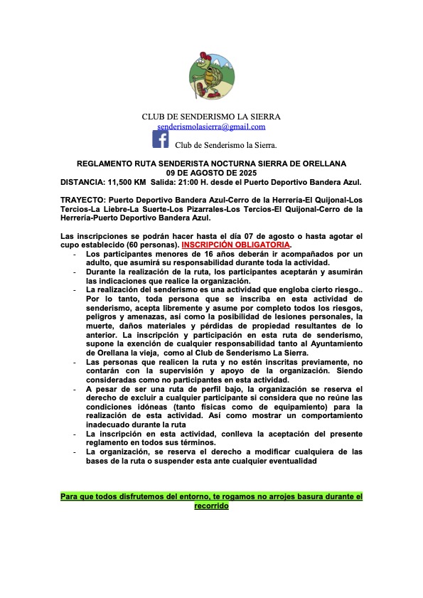 Información: (34) 642881036 / senderismolasierra@gmail.com