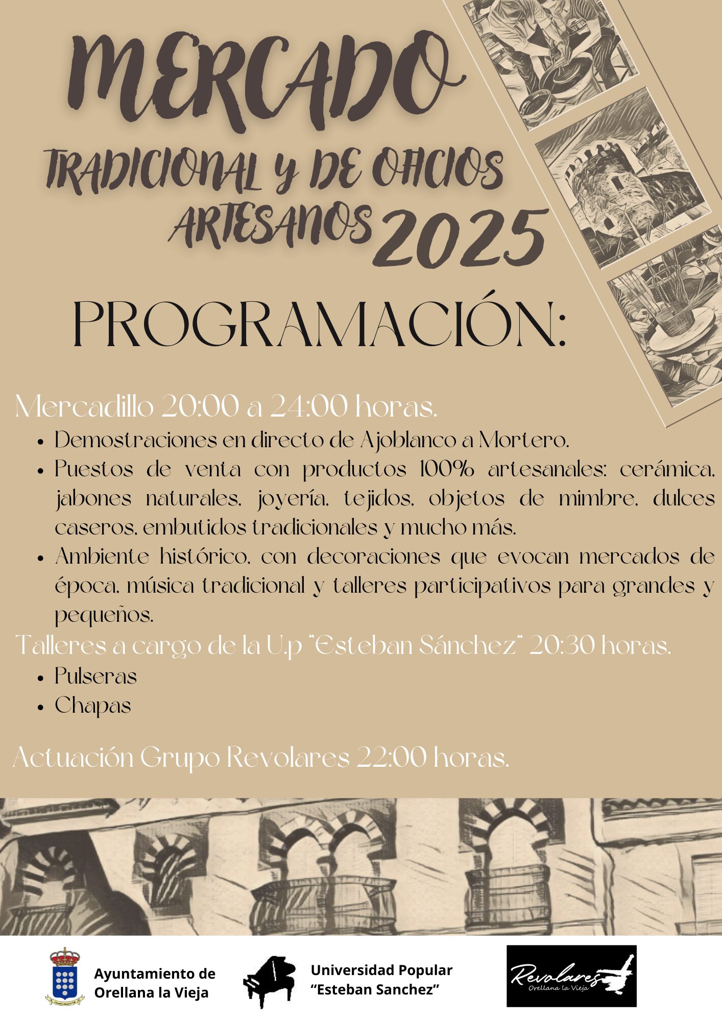 PROGRAMACIÓN Y HORARIOS DEL MERCADO TRADICIONAL Y DE OFICIOS ARTESANOS 2025 EN ORELLANA LA VIEJA