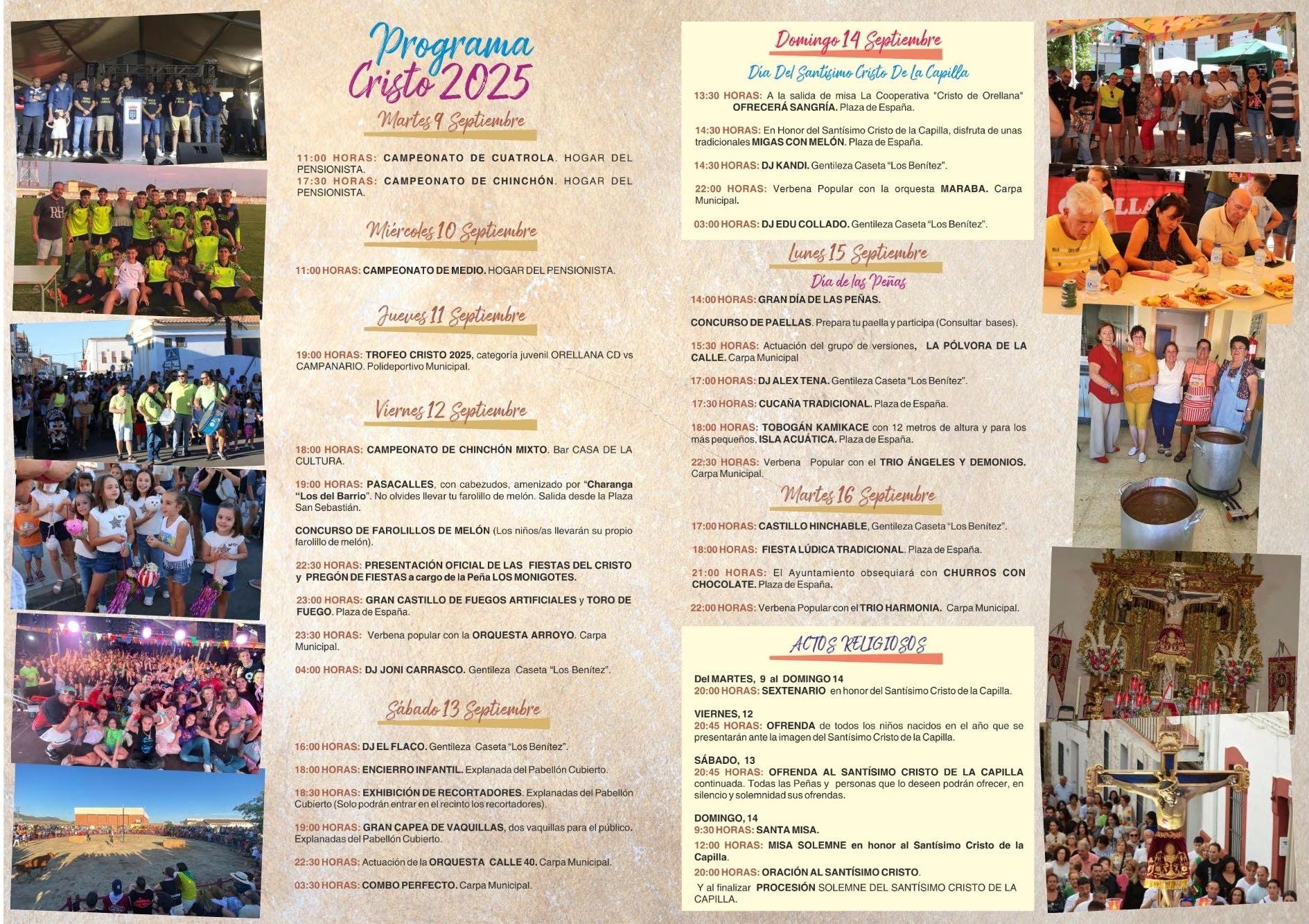 Del 12 al 16 de septiembre celebraremos en Orellana la Vieja nuestras Fiestas Patronales en honor al Santísimo Cristo de la Capilla
