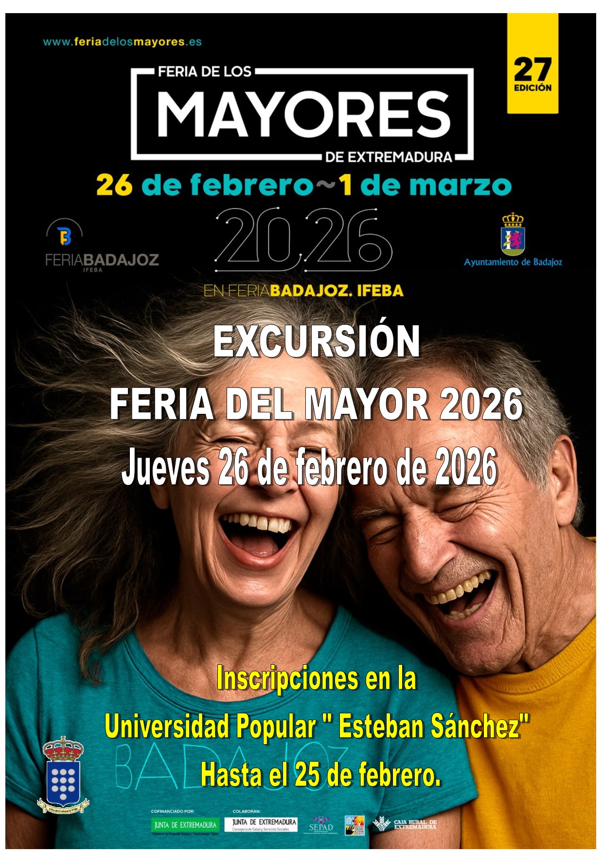 Excursión a la Feria de los Mayores de Extremadura 2026, que se celebrará del 26 de febrero al 1 de marzo en Badajoz.