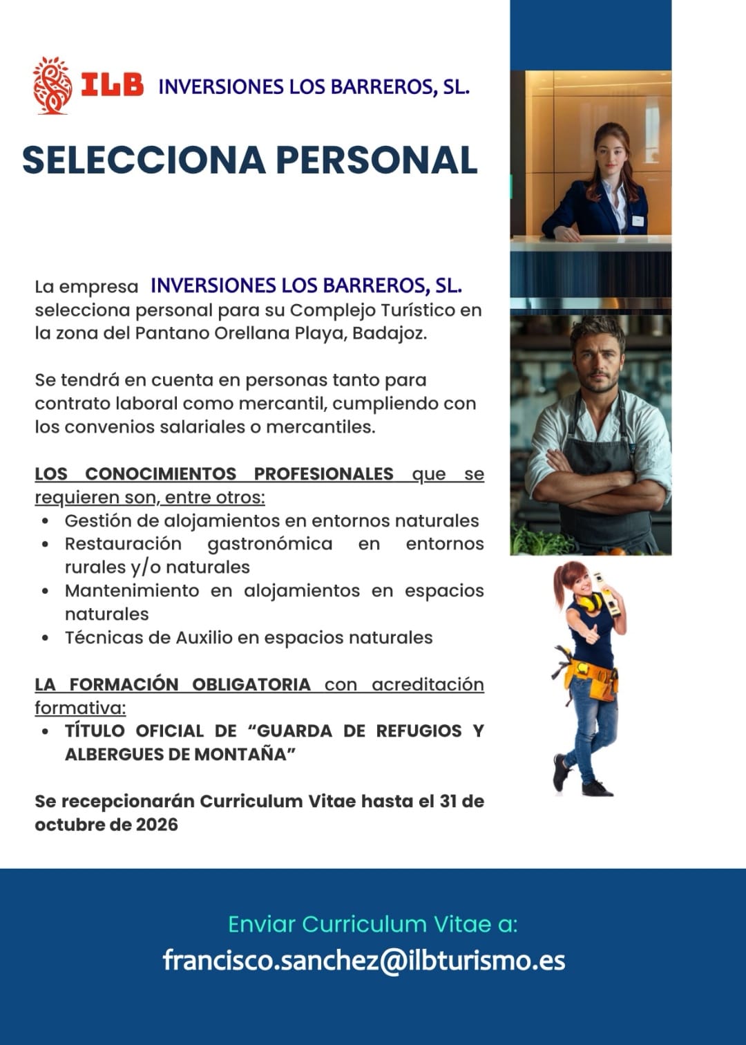 Se remite adjunto imagen con datos sobre una oferta de empleo en Orellana la Vieja de la empresa ILB Turismo