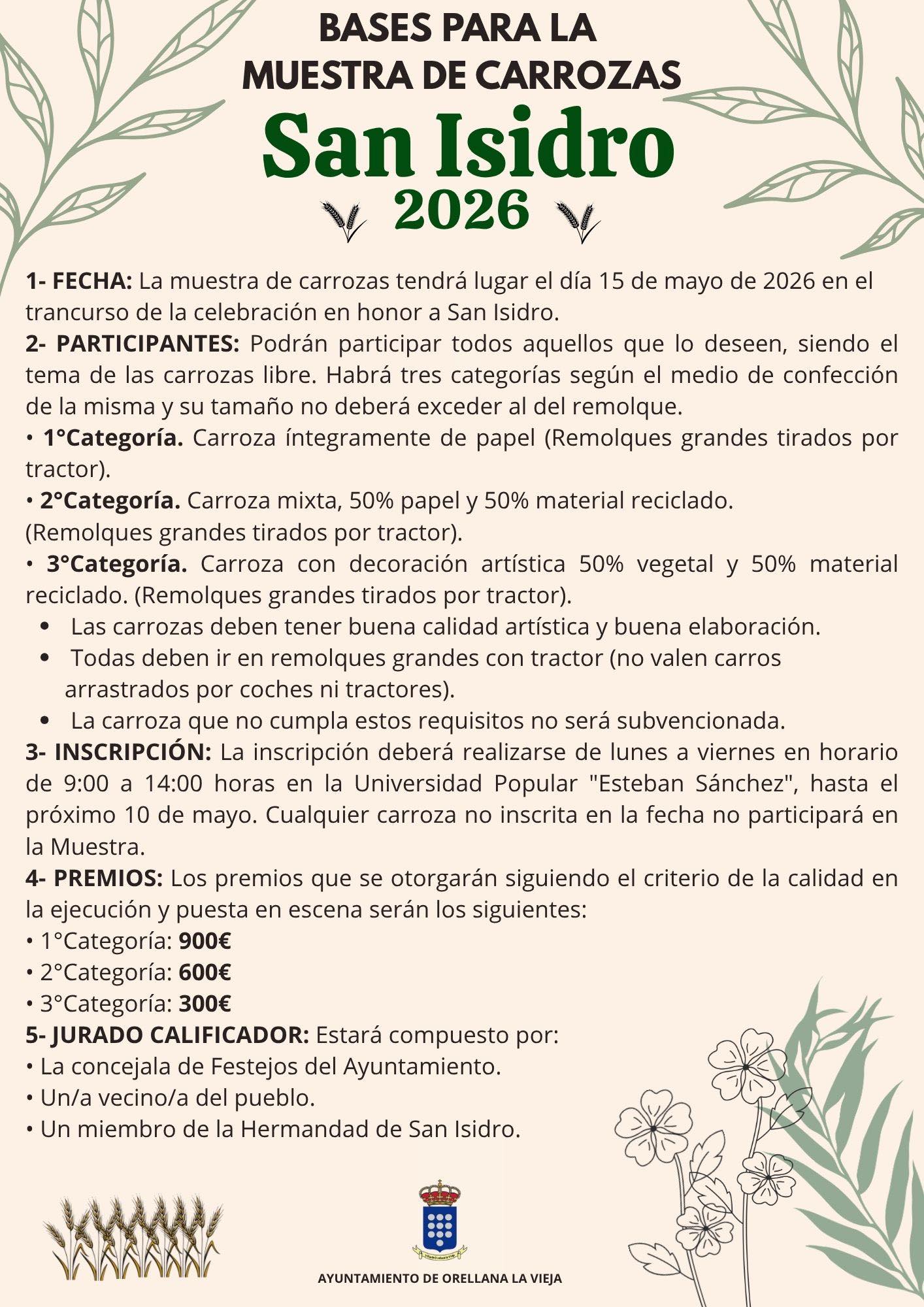 Se remiten las bases de la muestra de carrozas para San Isidro 2026